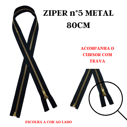 Contém 01 und de ziper com 80cm de cumprimento + cursor com trava.